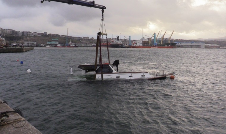 Teknenin sudan çıkarılmasını çevredeki diğer tekne sahipleri ile vatandaşlar meraklı gözlerle çıkarılmasını takip etti.