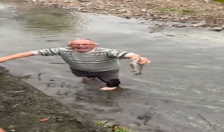 Artvin’in Hopa ilçesi açıklarında geçtiğimiz hafta sonu etkili olan fırtına sonrasında bir balık üretim tesisine ait balık kafesleri parçalanmış kaçan somonlar da akıntıyı takip ederek derelere akın etmişti. Binlerce somon balığı akıntıyla birlikte Arhavi’deki Kapisre Deresi ile Hopa’daki Sundura Deresi’ne ulaşırken, bölgede bunu duyan bir çok balıkçı derelere akın etmişti. Bu durumu takip eden İlçe Tarım ve Orman Müdürlüğü ekipleri bölgede incelemelerde bulunmuş, oltayla avlanma haricinde yasa dışı yöntemlerle balık avlayan şahıslara 1380 sayılı Su Ürünleri Kanunu uyarınca idari para cezası uygulamıştı. Tüm bunlardan sonra Hopa ilçesinde Hasan Derici isimli bir vatandaş da hem ceza yememek hem de somonları avlamak için ilginç bir yöntem geliştirdi. Derici’nin gerçekleştirdiği ilginç balık avı, görenleri hem şaşırttı hem de gülümsetti. Derici, derede gördüğü balığı yakalamak için dereye inerek elleriyle yakalamaya denedi. Bunda başarılı olurken, o anlar hem kendini hem arkadaşlarını güldürdü. O anları ise yanında bulunan arkadaşı tarafından cep telefonuyla kaydedildi. Sosyal medyada paylaşılan görüntüler kısa sürede büyük ilgi gördü. Videoda, Derici’nin sakin bir şekilde dereye eğildiği ve aniden yaptığı hamleyle balığı yakaladığı anlar yer alıyor.