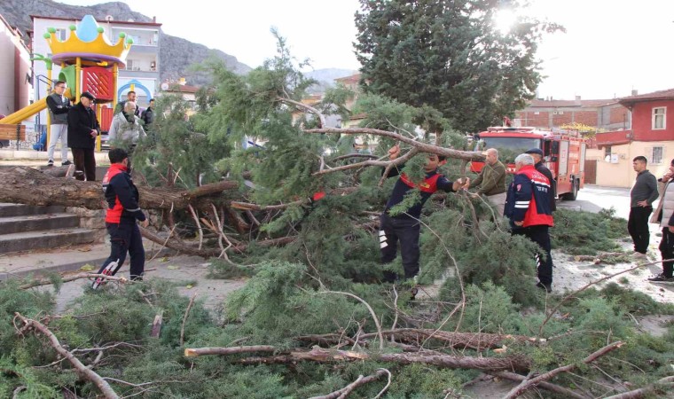 Edinilen bilgiye göre, Meteoroloji’nin günler öncesinden uyardığı fırtına etkili olduğu Amasya il merkezinde bir ağacın yıkılmasına neden