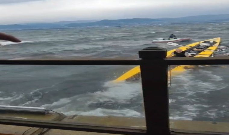 Kocaeli’de kanoyla denize açılan sporcular, fırtına sebebiyle boğulma tehlikesi geçirdi. Kanoları alabora olan ve denizin ortasında mahsur kalan sporcular, kendilerine atılan can simidiyle kurtarıldı.