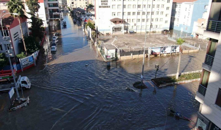 Hatay’ın İskenderun ilçesinde etkili olan fırtına sonrası kentin işlek noktaları Venedik’e döndü.