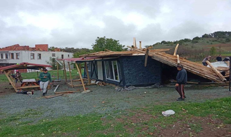 Kastamonu’nun İhsangazi ilçesinde fırtınanın uçurduğu çatı başka bir evin üzerine düştü. Olayda şans eseri yaralanan olmadı.