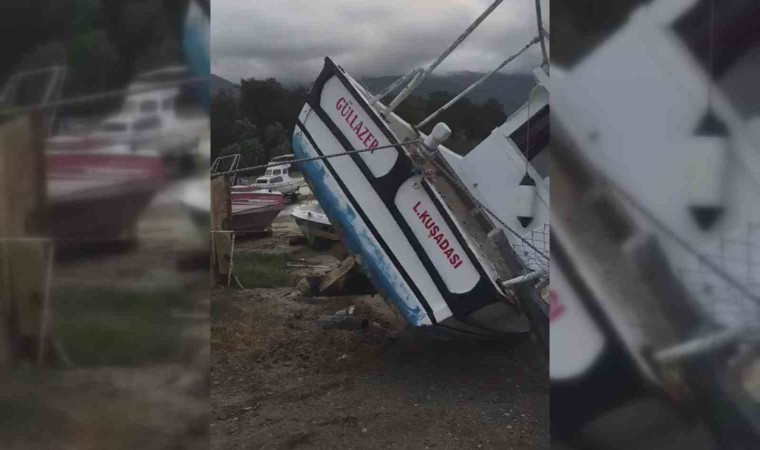 Aydın genelinde etkili olan sağanak yağış ve fırtına hayatı olumsuz etkilerken, Kuşadası ilçesi Davutlar Mahallesi’nde şiddetli fırtına etkili oldu. Sevgi Plajı’nda bulunan bazı tekneler, rüzgarın şiddetine dayanamayarak kıyıya vurdu. Dalgaların boyu 2 metreyi aşarken, açıkta bekleyen balıkçı tekneleri zor anlar yaşadı. Kıyıda demirli bazı tekneler su alırken, rüzgarla birlikte büyüyen dalgalar sebebiyle birçok tekne de kıyıya savruldu.