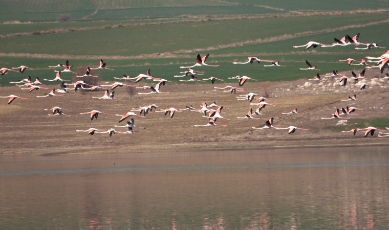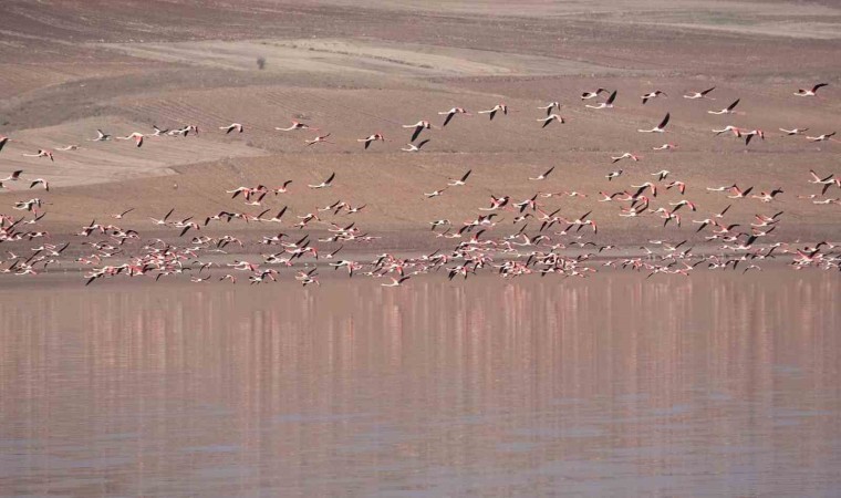 Yozgat’ta tarımsal sulama amaçlı kullanılan Gelingüllü Barajı, yüzlerce flamingoya ev sahipliği yapıyor. Hava sıcaklığının mevsim normalleri üzerinde seyretmesiyle baraja akın eden flamingolar, eşsiz görüntüleriyle bozkırı renklendirdi.