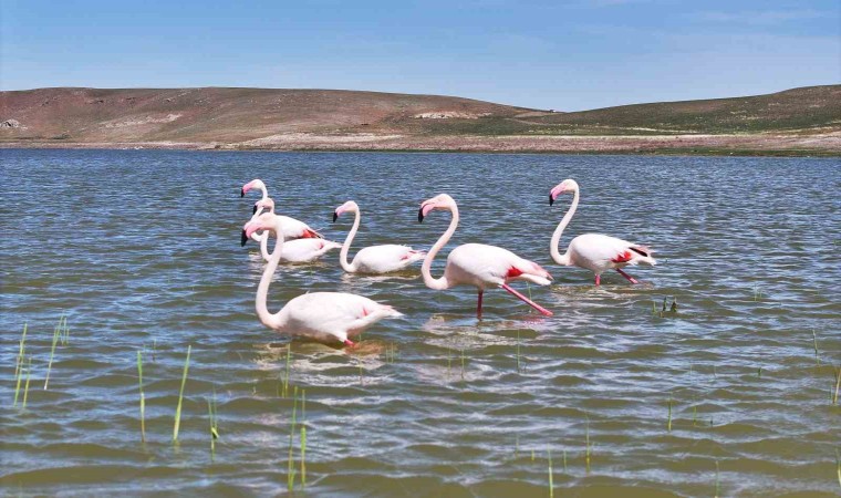 Ankara’nın doğal güzellikleriyle ön plana çıkan ilçesi Gölbaşı, göç eden flamingolara ev sahipliği yapıyor.