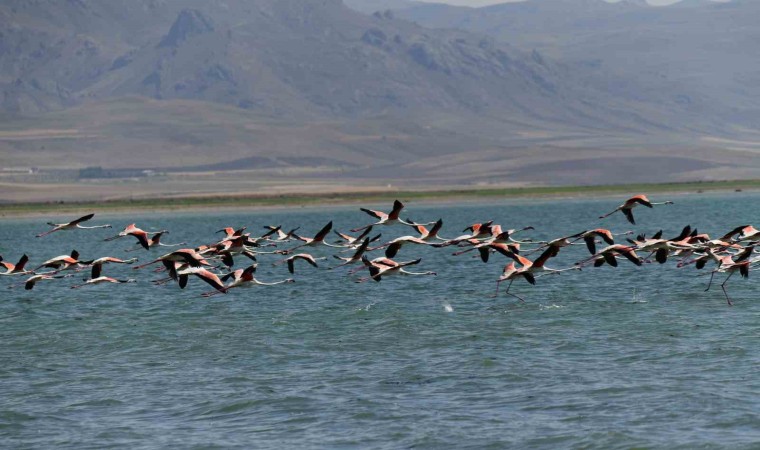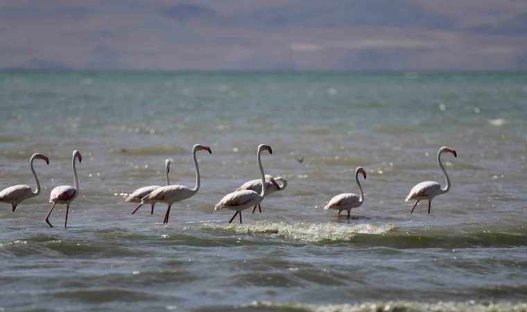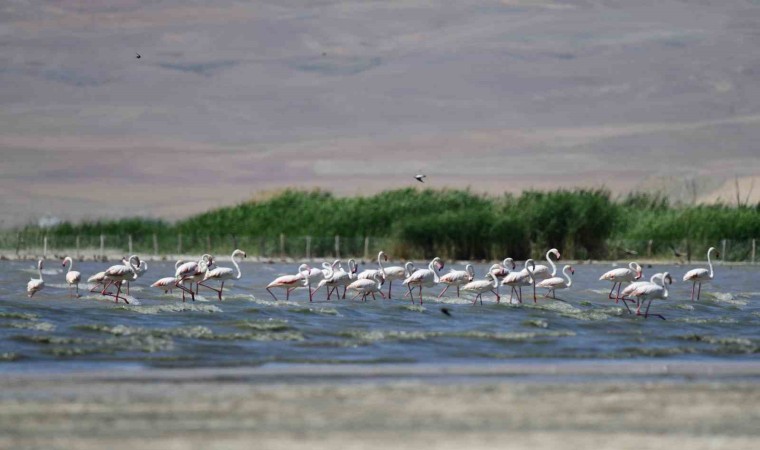 Van’a 30 kilometre uzaklıkta bulunan ve göçmen kuşlara ev sahipliği yapan Erçek Gölü, yaşanan kuraklığa rağmen daimi misafirleri flamingoları ağırlıyor.