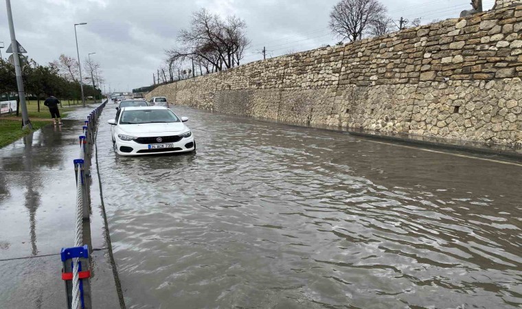 İstanbul’da aralıklarla etkili olan yağış, bazı yerlerde hayatı olumsuz etkiledi. Bakırköy Florya Sahil yolu, taşan rögarlar nedeniyle yollar su altında kaldı. O sırada yoldan geçen araç sürücüleri suda mahsur kaldı. Bazı araçlar geçmeye çalışırken geçemeyen araç sürücüleri ise geri dönüp yoluna devam etti. Belediye ekiplerinin yolu açmaya çalıştığı görüldü. Eşi ve çocuğuyla suda mahsur kalan bir sürücü, suyun çekilmesiyle yoluna devam ederken, 2 araç ise su nedeniyle yolda kaldı.
