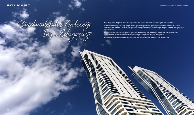 Folkart, toplam 108 sayfadan oluşan 2’nci Sürdürülebilirlik Raporu’nu yayımladı. Folkart’ın Sürdürülebilirlik alanında gerçekleştirdiği çalışmalara yer verilen rapor, 9 bölüm ve 43 alt maddeden oluşuyor. Folkart’ın ikinci Sürdürülebilirlik Raporu’nda belirlenen hedefler ve bu hedeflerin gerçekleşme durumlarına yer verildi.