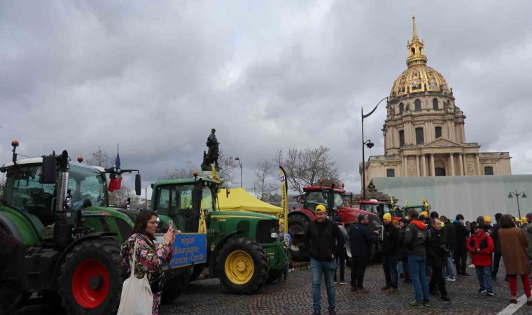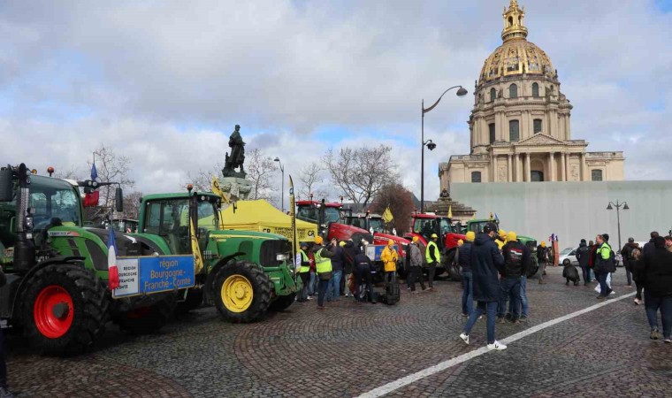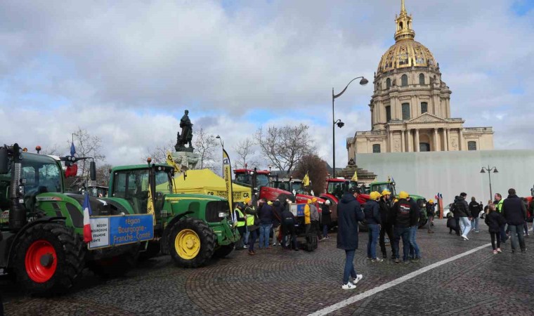 Fransa’da çiftçiler, yarın yapılacak tarım fuarı öncesinde düzenledikleri eylemde traktörleriyle Tarım Bakanlığı binasına giden yolu trafiğe kapattı.