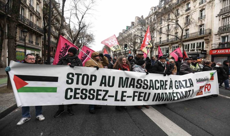 Fransa’da binlerce kişi Gazze için bir kez daha yürüdü. Termometrelerin eksi 3 dereceyi gösterdiği Paris’te toplanan Filistin destekçileri, İsrail’in Gazze’deki saldırılarının bir an önce son bulmasını ve bölgede taraflar arasında ateşkes sağlanmasını istedi. "Gazze’de İsrail’in yaptığı savaş değil soykırım”, "Filistin’in yanındayız”, “Bu bir soykırım, savaş değil”, “Gazze’nin çocukları Filistin’in çocukları, insanlık öldürülüyor” ve “Yaşasın Filistin” sloganı atan göstericiler, İsrail askerlerinin bölgedeki gerçekleri göstermeye çalışan gazetecilere katliam yaptığını belirtti.