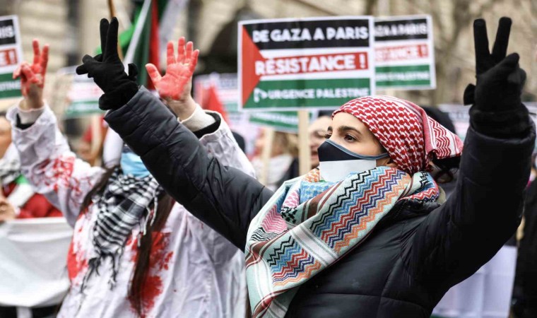 Fransa’nın başkenti Paris’te Filistin’e destek için toplanan binlerce kişi eksi 3 derece soğuğa rağmen Gazze Şeridi’nde acil ateşkes çağrısı için yürüdü.