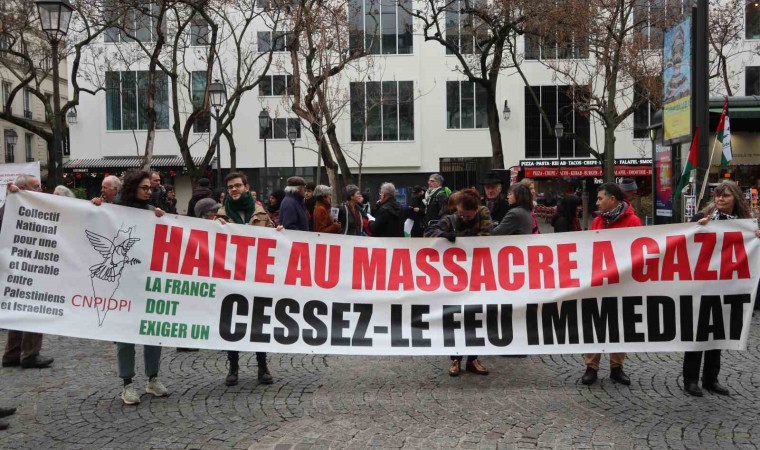 Fransa’nın başkenti Paris’te Chams-Elysee Caddesi üzerinde yarın düzenlenmesi planlanan Filistin’e destek gösterisi Fransa İçişleri Bakanlığı tarafından “Hamas yanlısı bir gösteri” olarak nitelendirilerek yasaklanınca, gösteri bugüne alındı. Başkentteki mağaza zincirlerinin bulunduğu Chatelet Meydanı’nda binlerce kişinin katıldığı miting sıkı güvenlik önlemleri altında gerçekleşti. Ellerinde Filistin ve Fransız bayraklarıyla mitinge gelen Filistin destekçileri, gösteride sık sık Gazze’de ateşkes çağrısı yaparken, Fransa Cumhurbaşkanı Emmanuel Macron’u İsrail ile işbirliği yapmakla suçladı. Göstericiler sık sık “Katil İsrail”, “Katil İsrail’in işbirlikçisi Macron sloganları attı.