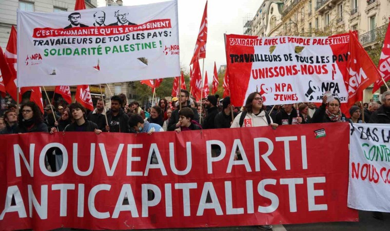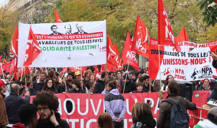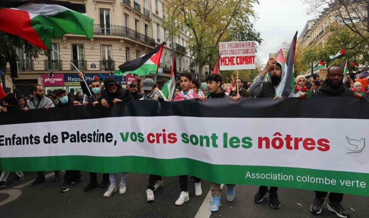 Fransa’nın başkenti Paris’te binlerce kişi Filistin’e destek için yürüdü. Republique Meydanı’nda başlayan ve işçi sendikaları ile sol partilerin desteklediği gösteride, “Acil ateşkes sağlansın”, “Gazze’deki katliam durdurulsun”, "İsrail’in bu yaptığı savaş değil soykırım”, “Filistin özgür kalacak”, “Gazze asla İsrail’in sömürgesi olmayacak” sloganları atan Filistin destekçileri, “Macron işbirlikçi”, “İsrail’e birileri yeter demeli” gibi sloganlarla İsrail ve Fransa Cumhurbaşkanı Emmanuel Macron’a tepki gösterdi. Sık sık İsrail Başbakanı Binyamin Netanyahu için “katil” sloganı atan göstericiler, ABD Başkanı Joe Biden ile İsrail Başbakanı Netanyahu’nun eli kanlı pankartlarını taşıdı.