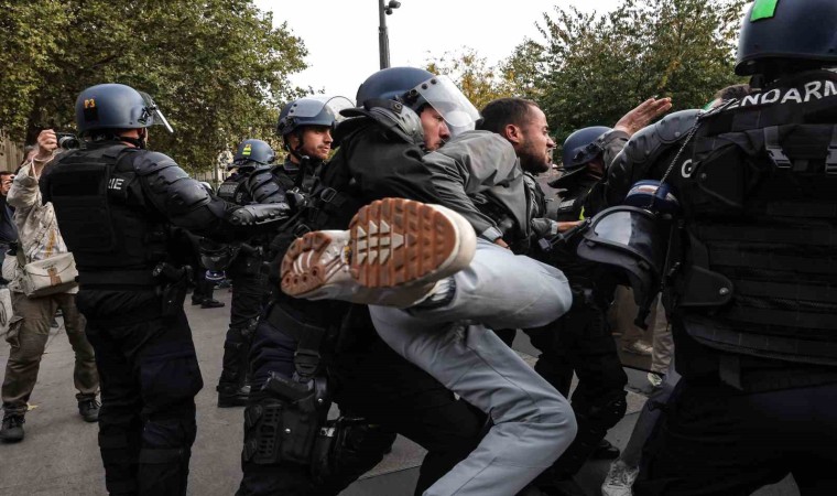 Fransa’da Filistin’e destek protestoları kamu düzenini tehdit ettiği gerekçesiyle yasaklandı. Başkent Paris’te Filistin’e destek gösterisine polis göz yaşartıcı gaz ve tazyikli suyla müdahale etti.