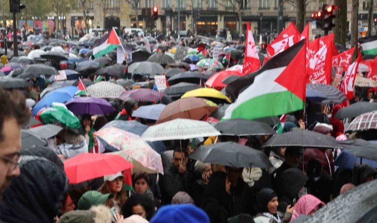 Fransa’nın başkenti Paris’te, İsrail’in saldırılarına ara vermeden devam ettiği Filistin için bir kez daha destek yürüyüşü düzenlendi.