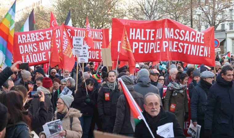 Paris’teki gösteriye, savaş karşıtı sendika ve sol partiler ile Paris’teki Filistinliler ve Filistin’e destek veren Fransızlar katıldı. Fransız polisi bölgede sıkı güvenlik önlemleri aldı.