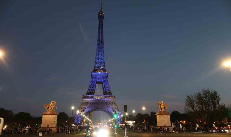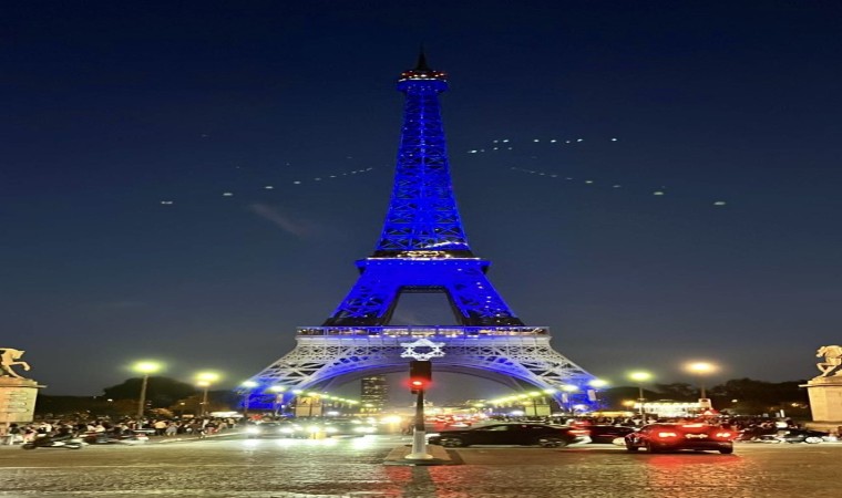 Yürüyüşün ardından havanın kararması ile dünyaca ünlü Eyfel Kulesi’ne İsrail ile dayanışma içinde olunduğu mesajını vermek amacıyla İsrail bayrağının silüeti yansıtıldı.