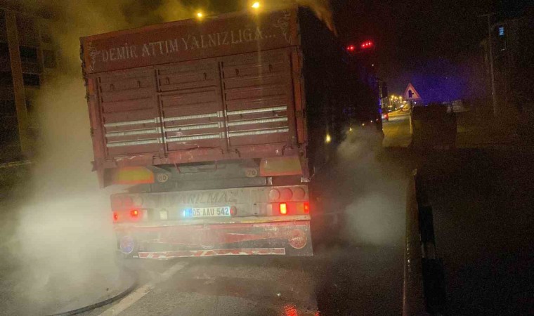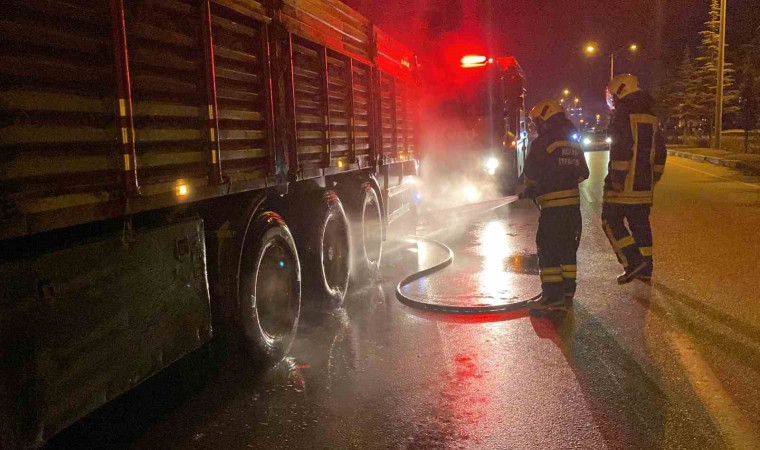 Konya’nın Kulu ilçesinde fren balatalarının ısınması sonucu lastiklerinde yangın çıkan tır, trafikteki diğer sürücülerinin uyarısıyla tamamen yanmaktan son anda kurtarıldı. Sürücünün müdahale ettiği yangın, itfaiye tarafından büyümeden söndürüldü.