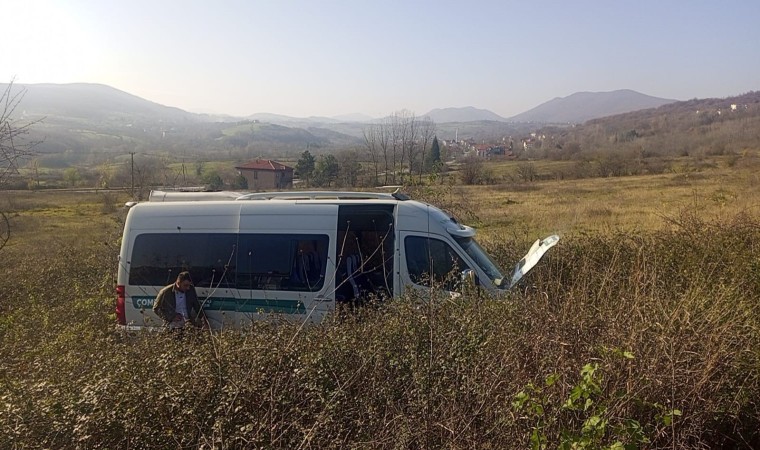 Zonguldak’ın Çaycuma ilçesinde meydana gelen trafik kazasında freni boşalan minibüs geri geri manevrayla önce ağaca çarptı daha sonra ormana uçtu. Minibüsün içinde yolcu olmamasıyla faciadan kıl payı dönüldü.