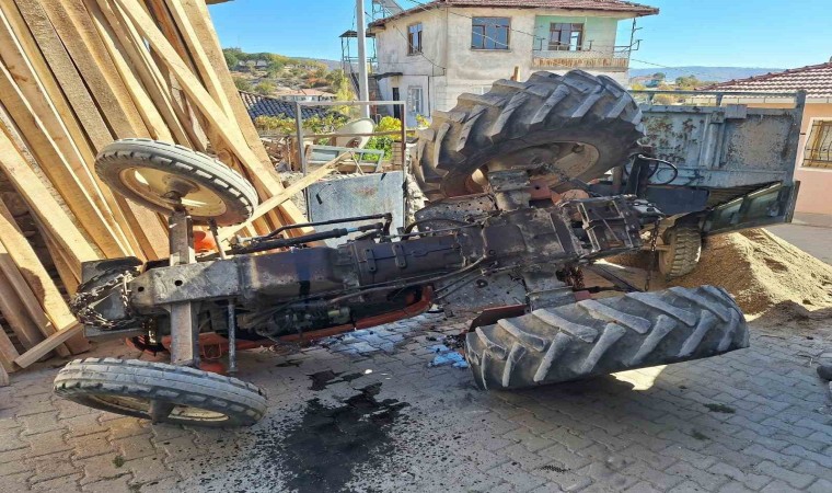 Manisa’nın Gördes ilçesinde kum yüklü traktör, freninin boşalması sonucu bir evin bahçesine girerek ters döndü. Kazada Traktör sürücüsü yaralandı.