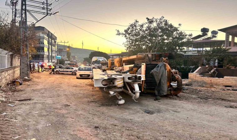 Hatay’da freni patlayan beton mikseri pompasının bulunduğu kamyon, kepçeyi ve pikabı biçti. Kazada; 4 kişi yaralandı.