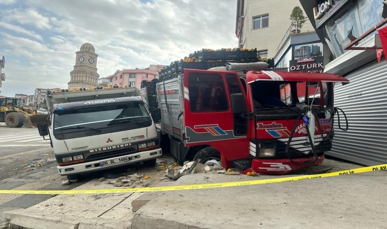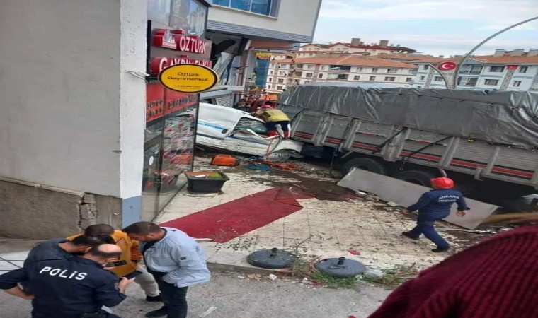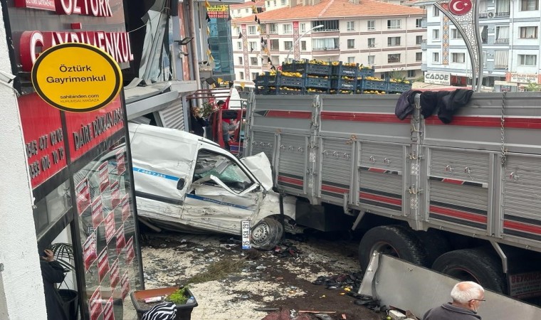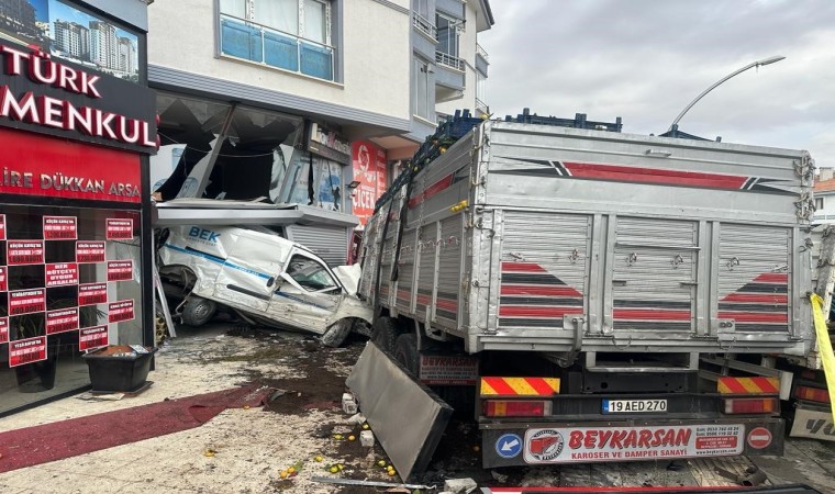 Kaza, Mamak ilçesi Yeşilbayır Mahallesi Sağduyu Caddesi’nde meydana geldi. M.Y.’nin kontrolündeki 13 buçuk ton mandalina yüklü 19 AED 270 plakalı kamyon, freninin arızalanması sonucu yan yolda giden Ö.P. kontrolündeki 35 ASA 291 plakalı hafif ticari araca çarptı. Frenleri tutmadığı için duramayan kamyon, önüne aldığı araçla birlikte metrelerce sürüklenerek bir dükkana girdi. Çevredekilerin ihbarı üzerine olay yerine polis, sağlık ve itfaiye ekipleri yönlendirildi. Hafif ticari araçta sıkışan sürücü, itfaiye ekiplerince kurtarıldıktan sonra diğer yaralı şoförle birlikte Etlik Şehir Hastanesine kaldırıldı. Yaralı şoförlerin hayati tehlikelerinin olmadığı öğrenilirken, kazanın sabah saatlerinde meydana gelmesi ve o sırada dükkanların kapalı olması muhtemel bir faciayı önledi. Anbean güvenlik kamerasına yansıyan kaza ile ilgili soruşturma başlatıldı.