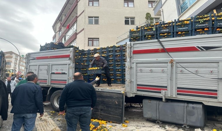 Ankara’da freni patlayan mandalina yüklü kamyon, hafif ticari aracı önünde sürükleyerek bir dükkana girdi. 2 kişinin yaralandığı kaza güvenlik kameralarına yansıdı.