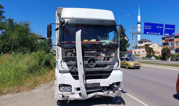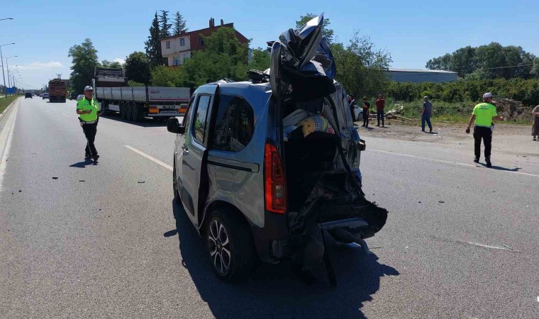 Samsun’da freni tutmadığı iddia edilen kepek yüklü tırın, yol kenarında park halindeki hafif ticari araca çarptığı kazada 1’i ağır 3 kişi yaralandı.