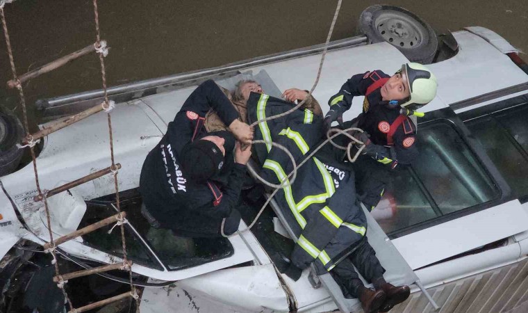 Edinilen bilgiye göre kaza, sabah 08.20 sıralarında kent merkezi girişindeki demir çelik köprüsünde meydana geldi. Pazarcılık yapan Süleyman Aysan (59) idaresindeki 78 BH 672 plakalı minibüsü ile demirçelik kavşağında dönüş yaptığı sırada iddiaya göre frenlerinin boşalması sonucu köprü korkuluklarını kırarak Araç çayına uçtu. Yan vaziyette suya batan aracın sürücüsü boğulmaktan son anda kurtularak aracından çıkarak yardım bekledi. Kazayı fark eden diğer sürücülerin ihbarı sonucu olay yerine polis, sağlık, itfaiye ve AFAD ekipleri sevk edildi. İtfaiye ekipleri halat merdivenle indikleri yerden yaralı sürücüyü sedyeye alarak itfaiye merdiveni yardımı ile yukarıya çıkardı. Olay yerinde sağlık ekiplerinin ilk müdahalesinde bulunduğu sürücü Aysan, araçta tek olduğunu ve biranda frenlerinin boşaldığını söyledi.