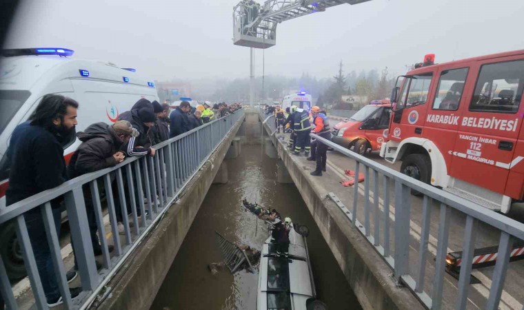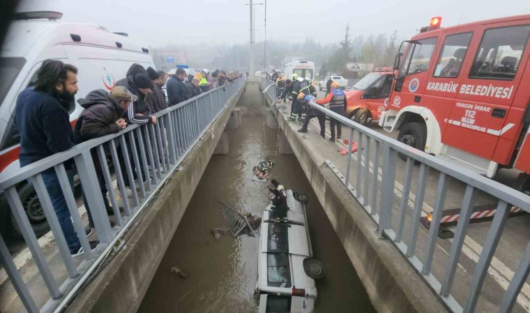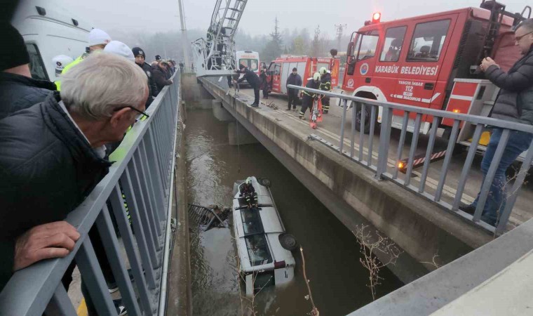 Karabük’te sabah saatlerinde kavşaktan döndüğü sırada frenleri boşalan minibüs demirçelik köprüsünün korkuluklarını kırarak Araç çayına uçtu. Kazada yan vaziyette suya batan aracın sürücüsü yaralı olarak itfaiye ekiplerinin çalışmaları ile kurtarıldı.