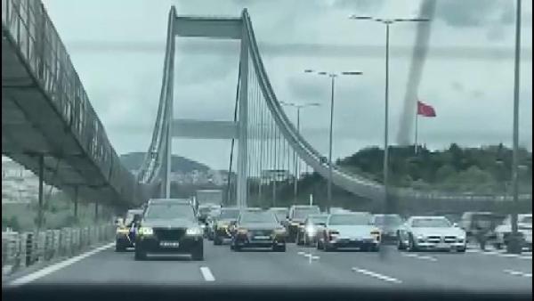 Fatih Sultan Mehmet Köprüsü'nde geçtiğimiz cumartesi günü, çakarlı gelin aracının da aralarında bulunduğu düğün konvoyu, tüm şeritleri kapatarak trafiği yavaşlatmıştı. O anlar cep telefonu kamerasına yansımıştı.Konvoydaki çakarlı gelin aracı dikkat çekerken, konvoydakiler camlardan çıkarak yaktıkları meşalelerle ilerlemişti. Korna ve müzik sesleri eşliğinde ilerleyen konvoy, diğer sürücülerin tepkisine neden olmuştu. Edirne yönüne ilerleyen konvoyu sürücüler cep telefonu kamerası ile görüntülemişti.(DHA)