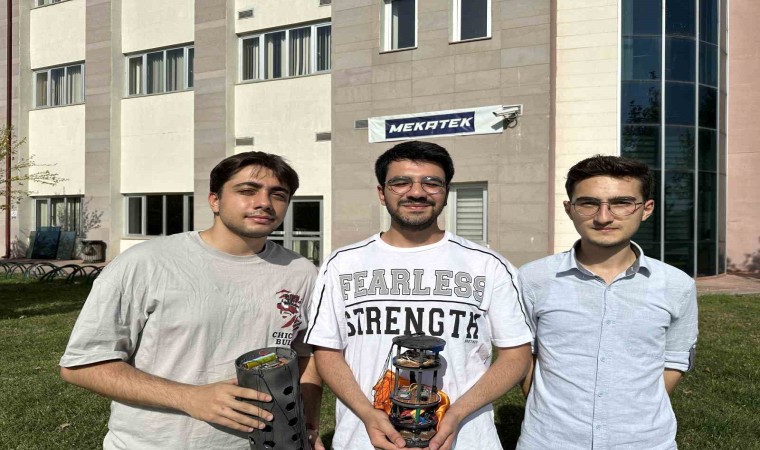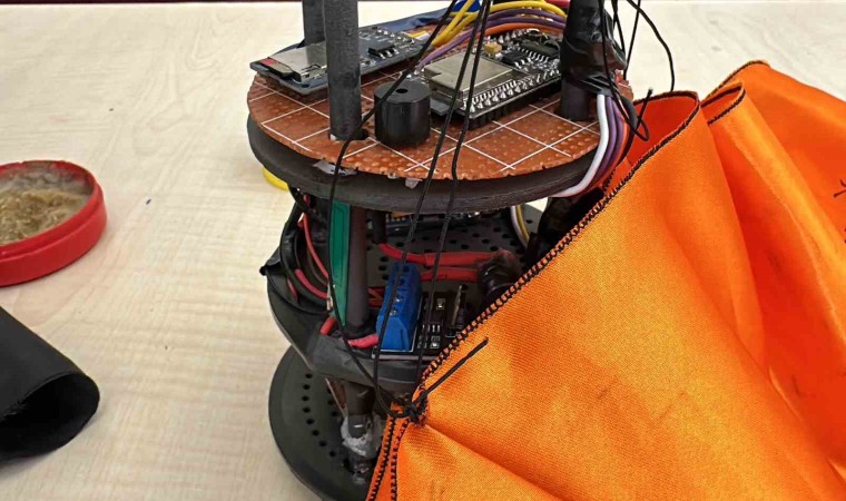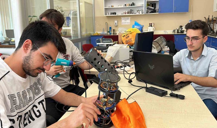 Uydu hakkında bilgi veren Elektrik Elektronik Mühendisliği 3. sınıf öğrencisi Muhammet Mert Büyükbaş, "Geçen sene üniversitemizde uydu takımı vardı. Biz sıfırdan oluşturduk. TEKNOFEST’te bu uydu ile 150 takım arasından 21. olduk. TEKNOFEST’te yarışmak için bu uyduyu yaptık. Bu uydu yarışma öncesinde rokete yüklenir. Roketle beraber 750 metre bir irtifaya çıkar. Bu her sene şartname ile birlikte değişiyor. Roket ile beraber çıktıktan sonra tek kapsül halinde roketten ayrılıyor. 550 metreye kadar tek parça halinde iner. 550 metre irtifadan sonra 2 parçaya ayrılıyor uydumuz bundan sonra 2 parça olarak düşüşe geçer. Düşüş esnasında üzerinde bulunan 10’a yakın sensor ve kameradan yer istasyonu adını verdiğimiz bir bilgisayar programımız var. Buradan kontrol ediyoruz. Bu yazılımı tamamen kendimiz yazıyoruz. Üzerinden aldığı sıcaklık, basınç motor izi gibi verileri ve kamera görüntüsünü hem bu yer istasyonuna data olarak gönderiyor hem de kamera görüntüsünü canlı izliyoruz. Gyro’dan da eksen bilgisini ölçebiliyoruz. Bu yere düşüş esnasında belli metrelerde belli hızda inmesi gerekiyor. Paraşüt hesaplarımız ve uydumuzun aerodinamiği bu şekilde tasarlandı" ifadelerini kullandı.