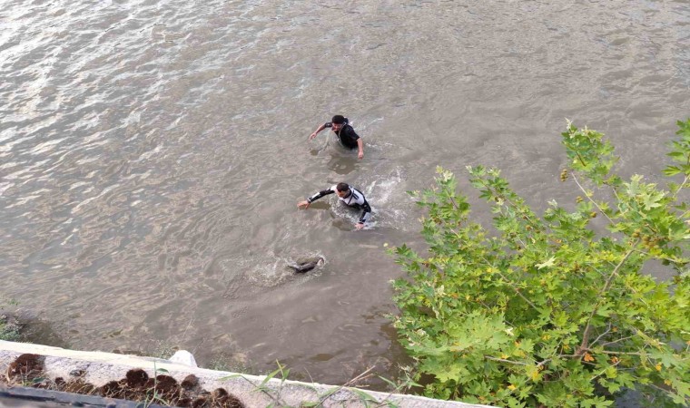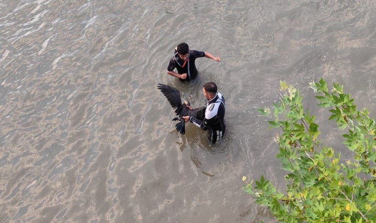 Amasya’da Yeşilırmak Nehri’nde çırpınan karabatak kuşunun yardımına itfaiye dalgıç ekibi yetişti.