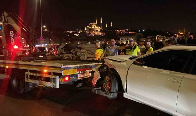 Kaza, saat 00.30 sıralarında Fatih, Galata Köprüsü üzerinde Eminönü istikametinde meydana geldi. Edinilen bilgiye göre, Karaköy’den Eminönü istikametinde seyir halinde olan 34 EAC 148 plakalı hafif ticari aracın sürücüsü, bilinmeyen bir nedenle aracının direksiyon hakimiyetini kaybedince park halindeki iki araca çarptı. Çarpmanın etkisiyle hafif ticari araç yan yattı. Yan yatan araçta bulunan 1’i kadın 2 kişi yaralandı. Çevredeki vatandaşlar durumu polis, itfaiye ve sağlık ekiplerine bildirdi. Olay yerine gelen sağlık ekipleri yaralılara ilk müdahaleyi olay yerinde yaptı. İlk müdahalenin ardından yaralılar ambulansla hastaneye kaldırıldı. Hastaneye kaldırılan yaralıların durumunun iyi olduğu öğrenilirken kazada park halindeki 3 araç ve hafif ticari araçta hasar meydana geldi. Kaza nedeniyle Galata Köprüsü’nde trafik yaklaşık 1 saat durdu. Araçların çekiciyle kaldırılmasının ardından trafik akışı normale döndü.