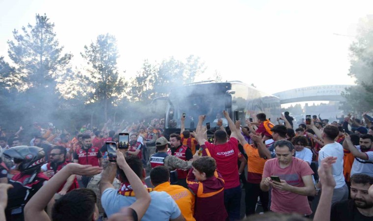 Galatasaray kafilesi, yarın akşam saat 21.30’da Fenerbahçe ile karşılaşacakları Süper Kupa final maçı için Şanlıurfa’ya geldi. Uçakla GAP Havalimanı’na inen takımı çok sayıda taraftar karşıladı. Meşale yakıp, tezahüratlarda bulunan taraftarlar, futbolcuları görmek için adeta birbirleriyle yarıştı.