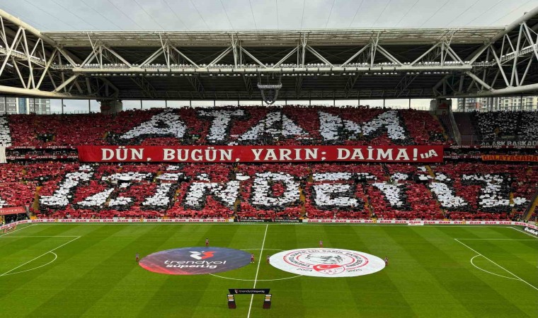 Kale arkasındaki Kuzey tribünündeki kartonlarda Atatürk’ün silueti yer alırken, Doğu tribününde yine kartonlarla ’Atam İzindeyiz’ yazıldı. Ayrıca ’Dün, bugün, yarın; daima’ pankartı asıldı.
