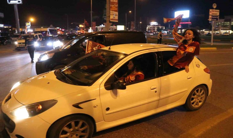 Trendyol Süper Lig’in 38. haftasında deplasmanda Konyaspor’u 3-1 yenerek 24. şampiyonluğuna ulaşan Galatasaray’da taraftarlar Sakarya’nın cadde ve sokaklarında toplaşarak sevinç naraları atmaya başladı. Şampiyonluğu doyasıya kutlayan sarı-kırmızılı taraftarlar, ellerinde bayraklar ve araç konvoylarıyla şehir turu attı. Burada şampiyonluk şarkıları söyleyen taraftarlarından bazıları çocuklarını bu coşkuya ortak etti. Serdivan ilçesi Bağlar Caddesi’nde bazı Sakaryaspor taraftarları ise kutlama yapan vatandaşlara engel olmaya çalıştı. İki taraftar grubu arasında çıkan arbede polis ekiplerince güçlükle ayrıldı. Karşılıklı olarak sloganlaşan taraftarlardan biri polis ekiplerince zor kullanılarak polis otosuna bindirildi. Sakarayspor’un taraftarları ise şampiyonluk kutlamalarına Galatasaray forması yakarak tepki gösterdi. Taraflar, polis ekiplerinin müdahalesiyle dağıldı. Şampiyonluğunu ilan eden Galatasaray’ın taraftarları ise şehrin muhtelif yerlerinde kutlamalarına devam ediyor.