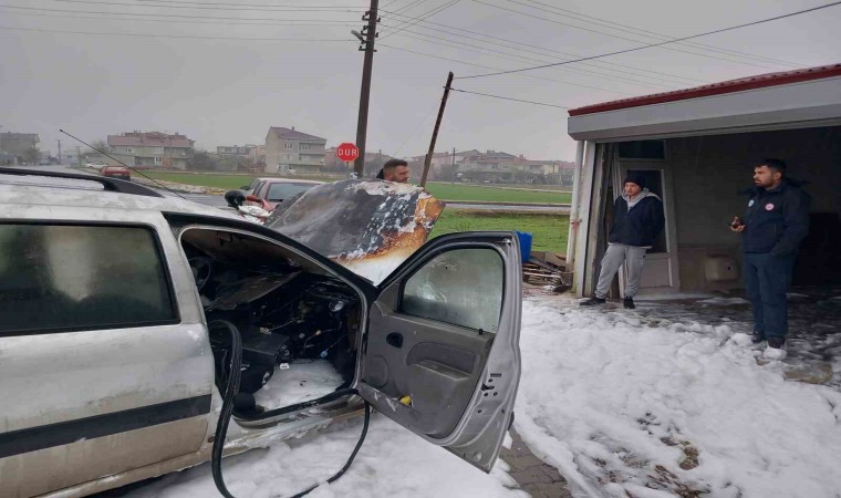 Tekirdağ Ergene’de bir evin yanındaki garajda park halinde bulunan otomobilde yangın çıktı. Yanan araç kullanılamaz hale geldi.