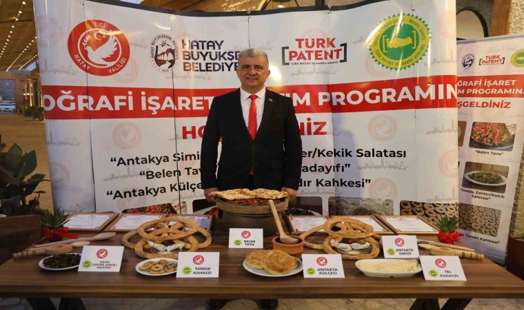 Kahramanmaraş merkezli depremlerde büyük yıkıma uğrayan Hatay’da yaralar sarılmaya devam ediyor. Hatay Valisi Mustafa Masatlı’nın göreve gelmesiyle birlikte başlayan ihya sürecinde kentin kültürü de unutulmadı. Hatay Valiliği İl Planlama ve Koordinasyon Müdürü Mustafa Örgüt öncülüğünde gastronomi şehrinin lezzetlerinin tescillenmesi için çalışma başlatıldı. Bölgeye özgü olan Antakya simidi, Belen tava, Antakya külçesi, Hatay zahter salatası, Hatay tel kadayıfı ve Hatay tandır kahkesi Türk Patent Enstitüsü tarafından tescillenerek coğrafi işaret verildi. Tescillenen coğrafi işaretli lezzetler, Antakya ilçesi Gastronomi Çarşısı’nda düzenlenen programla tanıtıldı.
