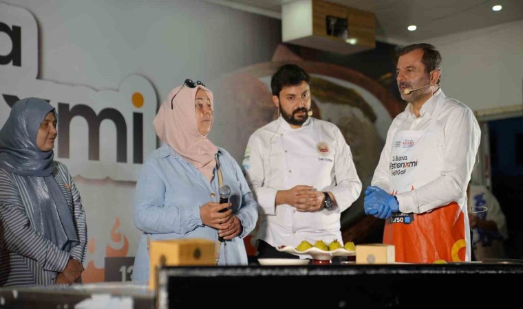 Bursa’nın lezzetlerini ilçelerle buluşturmak ve Bursalıları festivale davet etmek amacıyla Büyükşehir Belediyesi tarafından ilçelerde gezdirilen Gastronomi Tırı’nın yeni durağı Gürsu oldu. Belediye Başkanı Mustafa Işık ve Eşi Sümeyye Işık tarafından sahnede özel bir mutfakta hazırlanan menü ile Gürsu’nun lezzetleri tanıtıldı. Akademisyen Şef Fatih Yıldırım, Bursa Aşçılar Derneği Kadın Kolları Başkanı Tülay Dönmez, Eğitmen Şef Selin Sekizkardeşler ve Eğitmen Şef AybiçeTaylak’ın yardımları ile anlatılan menüde Gürsu bamyasından bamya çorbası, hinkal ve armutlu kurabiye yapıldı.