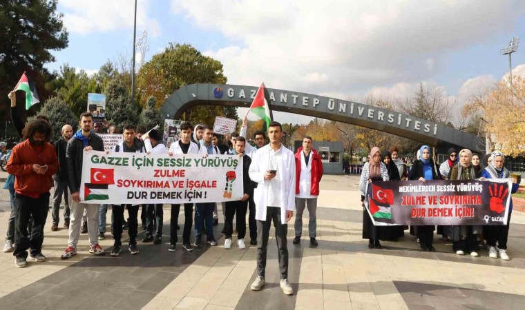 Gaziantep Üniversitesinde (GAÜN) Filistin’e destek amacıyla sessiz bir yürüyüş düzenlendi.
