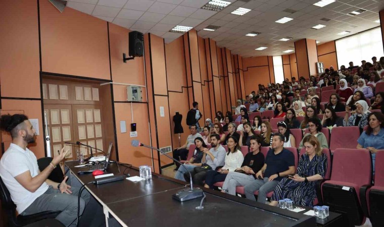 Güzel Sanatlar Fakültesi Konferans Salonunda gerçekleşen seminerin konferans kısmında Doç. Dr. Özkirişçi, yapay zekanın tarihi, çalışma prensibi, gelişimi, görüntü üretim modelleri ve kullanım alanları hakkında katılımcıları bilgilendirdi.