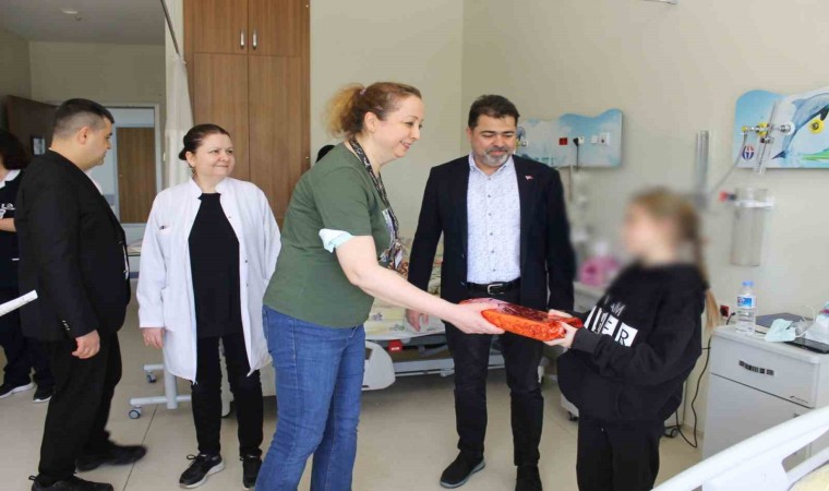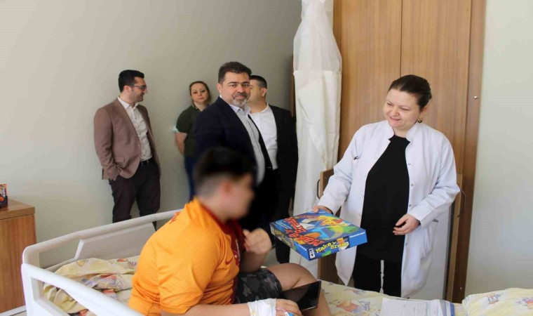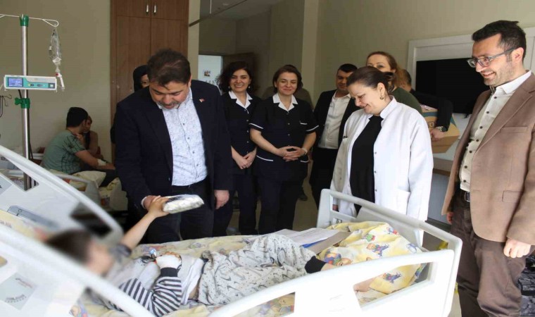 Çocuk Hastanesi bünyesinde tedavi gören çocukları ziyaret eden Hastane Yönetimi, hastane bünyesinde tedavi gören çocuklara geçmiş olsun temennisinde bulunarak Ramazan Bayramı öncesi çocuklara oyuncak dağıttı.