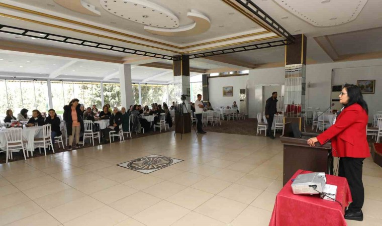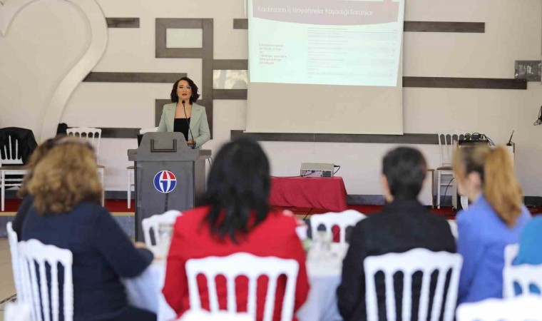 Konuşmasına 8 Mart Dünya Kadınlar Gününü kutlayarak başlayan Psikolog Seda Ovayolu ise kadının toplumdaki önemi ve kadının çalışma hayatında yaşadıkları zorluklara değindi.