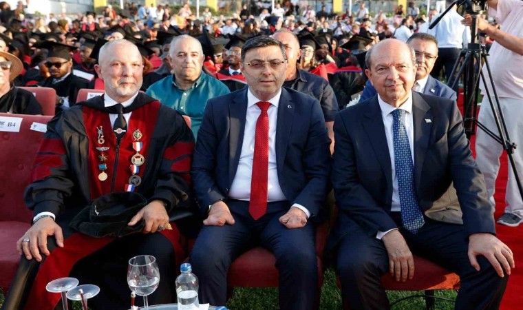 Kendisinin de üniversiteden 40 yıl önce mezun olduğunu anlatarak konuşmasına başlayan Cumhurbaşkanı Ersin Tatar, mezun olmaya hak kazanan öğrencileri ve ailelerini tebrik ederek, ülkelerine dönecek olanların "Kuzey Kıbrıs Türk Cumhuriyeti’ni unutmamaları dileğini" paylaştı. En büyük kazanımlarının; Kuzey Kıbrıs Türk Cumhuriyeti’nde arkadaşlık, dostluk ve kardeşlik olduğunu sözlerine ekledi. Mezunların, arkadaşları ve öğretmenleriyle iletişimlerini sürdürmesini tavsiye eden Cumhurbaşkanı Tatar, mezunların kendilerini yenilemesi ve geliştirmesi için hayat boyu eğitimin önemini de vurguladı. Tatar, “Hiçbir zaman mücadeleden kopmayın, pes etmeyin. İnsanlığa, ülkenizin kalkınmasına ve gelişmesine katkı koyun. Hayatın değerini bilin ve hayatı sevin. Hayat boyu eğitiminize devam edin. Çalışın, üretin ve mutlu olun. Karşı tarafa dürüst olun. Özgüveninizi yakalarsanız başarıyı yakalarsanız. Çağımızdaki gelişmelerle hayat boyu eğitim alarak, başarılı olmamanız için hiçbir neden yok” dedi.