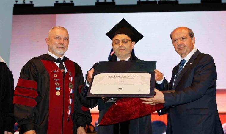 Cumhurbaşkanı Ersin Tatar, Girne Amerikan Üniversitesi’nin Mezuniyet Töreni’ne katılımında; Türkiye’de engelli bireylerin başta yargıç olabilmesi yanında diğer hayâtî ve mesleki alanlardaki tahditlerin de kaldırılmasında öncü olan Ak Parti İstanbul Milletvekili Serkan Bayram’a Onursal Doktora Ünvanı’nı da, üniversite adına takdirde bulunarak takdim etti.