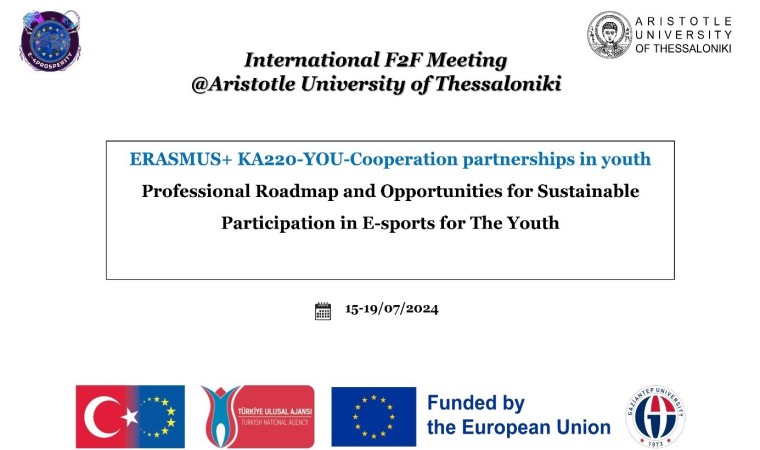 Erasmus+ KA220-YOU işbirliği projeleri kapsamında gerçekleştirilen E-4PROSPERITY “Professional Roadmap and Opportunities fo rSustainable Participation in E-sports for The youth” projesinin Selanik’te düzenlenen Kick-Off toplantısı başarıyla tamamlandı. Aristoteles Üniversitesinin ev sahipliğinde gerçekleştirilen etkinlik, projenin tüm paydaşlarını bir araya getirdi.