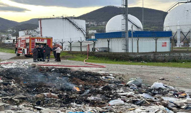 Samsun’da bir gaz dolum tesisisin yanındaki boş arazide atık malzemelerin yanması çevrede paniğe yol açtı.