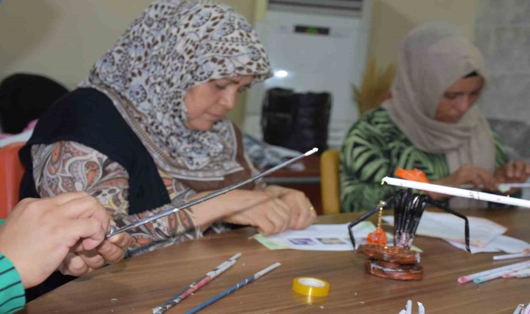 Şanlıurfa’nın Siverek ilçesinde kadınlar, ellerindeki gazete sayfalarını sanat eserine dönüştürüyor.