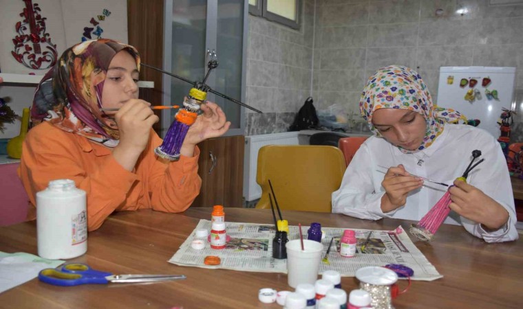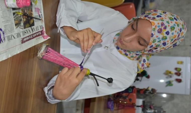 Okulların tatil olması nedeniyle bu kursa katıldığını belirten kursiyer Irmak Çiçeklidağ ise "Çok güzel bir çalışma, beğendim ve bu kursa gelmeye karar verdim. Geri dönüşümden kağıt bebekler yapıyoruz. Burada çok güzel zaman geçiriyorum, benden yaşça büyük olan ablalarımla çalışmak çok hoşuma gidiyor. Şu ana kadar 7 tane kağıt bebek yaptım" diye konuştu.